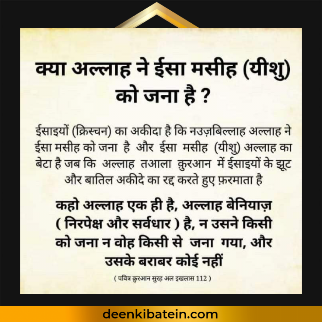 рдР рдирдмреА (рд╕o) рдХрд╣ рджреАрдЬрд┐рдП рдХрд┐ рдЕрд▓реНрд▓рд╛рд╣ рдПрдХ рд╣реИ, рдЕрд▓реНрд▓рд╛рд╣ рдмреЗ рдирд┐рдпрд╛рдЬрд╝ рд╣реИ,рд╡реЛ рдирд╛ рдХрд┐рд╕реА рдХрд╛ рдмрд╛рдк рд╣реИ рдФрд░ рдирд╛ рдХрд┐рд╕реА рдХрд╛ рдмреЗрдЯрд╛,рдФрд░ рдХреЛрдИ рдЙрд╕рдХреЗ рдмрд░рд╛рдмрд░ рдирд╣реАред(surah Ikhlaas)