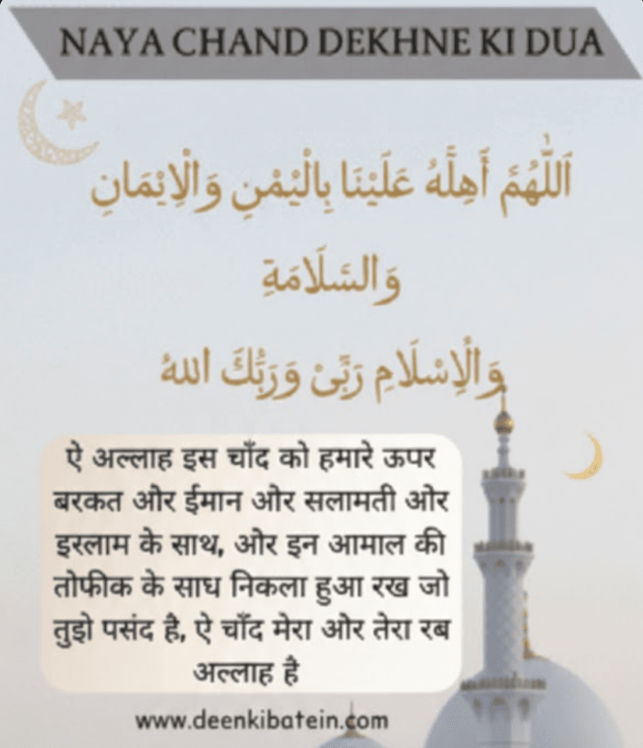 जब नया चाँद नजर आता है, तो यह हमें अल्लाह की कुदरत, उसकी रहमत और नई शुरुआत की याद दिलाता है। इसी मौके पर एक मस्नून (सुन्नत से साबित) दुआ पढ़ी जाती है।
