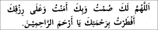 Allahumma Inni Laka Sumtu Wabika Aamantu Wa Alaika Tawakkaltu Wa Ala Rizqika Aftartu