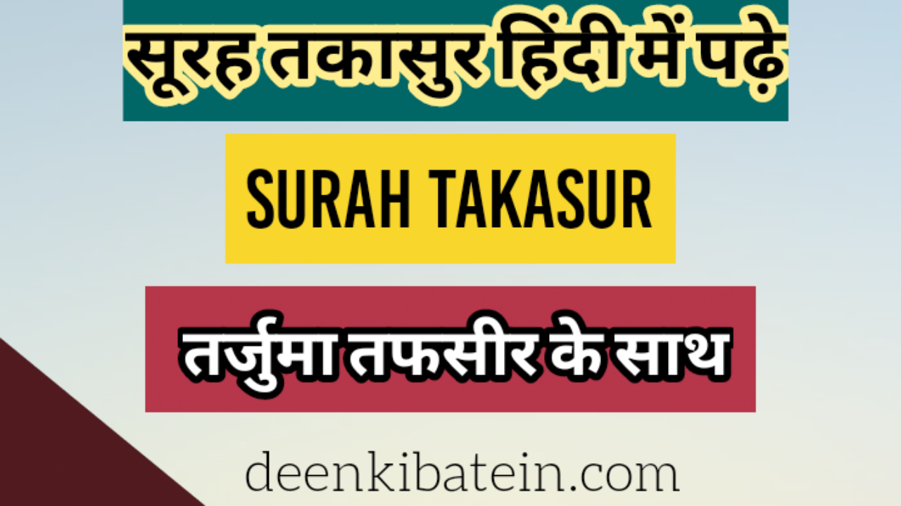 рдЖрдЬ рд╣рдо рдХреБрд░рд╛рди рдХрд┐ рдЙрд╕ рд╕реВрд░рдд рдХреЗ рдмрд╛рд░реЗ рдореЗрдВ рдмрд╛рдд рдХрд░реЗрдВрдЧреЗ рдЬреЛ рдЖрдо рддреМрд░ рдкрд░ рд╣рд░ рдХрд┐рд╕реА рдореБрд╕рд▓рдорд╛рди рдХреЛ рдпрд╛рдж рд╣реЛрддреА рд╣реИ рдФрд░ рдЗрд╕рдХреЛ рдЕрдХреНрд╕рд░ рдирдорд╛рдЬ рдореЗрдВ рд▓реЛрдЧ рддрд┐рд▓рд╛рд╡рдд рднреА рдХрд░рддреЗ рд╣реИред рдЗрд╕ рд╕реВрд░рдд рдХрд┐ рдмрд╣реБрдд рдлрдЬреАрд▓рдд рднреА рдЖрдИ рд╣реИредрд╣рдо рдмрд╛рдд рдХрд░ рд░рд╣реЗ рд╣реИ рдЖрдЬ рдХреЗ рдЯреЙрдкрд┐рдХ Surah Takasur in hindi with translation рдХреА рдЗрд╕рдореЗрдВ Surah Takasur рдХреЗ рд╣рд┐рдВрджреА рддрд░рдЬреБрдореЗ рдФрд░ рддрдлрд╕реАрд░ рдХреЗ рдмрд╛рд░реЗ рдореЗрдВ рдкрдвреЗрдЧреЗред